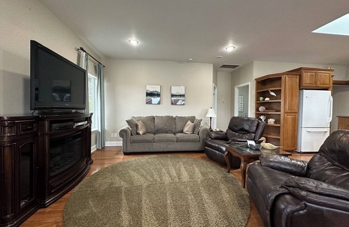 Discover the ultimate family vacation at our stunning lake house rental on the Pacific coast. Lake Front Property With 4 Queen bedrooms, and a FUN Sized Kids Bedroom, 3.5 bathrooms, a cozy game room and breathtaking views, this home offers luxury and relaxation. Enjoy kayaking or stand-up paddle boarding on the provided equipment, to enjoy a great adventure down the Siltcoos River. The Pacific Ocean is just 3 miles away for a change of scenery. Book now and create unforgettable memories in Florence, Oregon and the Surrounding Areas! *Note that the neighboring property does has chickens and a Rooster. The Rooster can be heard from the downstairs bedrooms. There are sound machines and ear plugs in the bedrooms to help accommodate for sound sensitivity*