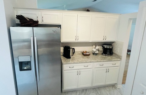 Kitchen: Completely updated with new cabinets and quartz counters. Breakfast peninsula with seating for 4. All kitchen appliances and necessities you will need! Keurig and slow drip provided.