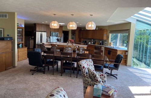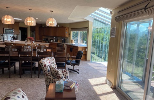 Open and spacious common area overlooking the valley. Wildlife abounds amongst the trees where this house sits. Ideal for extended families to gather, play, cook, reminisce, slow down, and enjoy God’s creation and each other.
