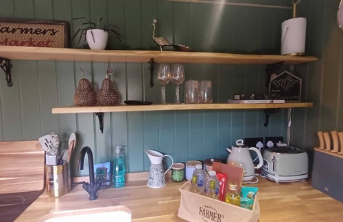 - Kitchenette with sink, 2-ring hob, fridge/freezer, kettle and toaster, kitchen essentials, basic crockery and cutlery for 2 people