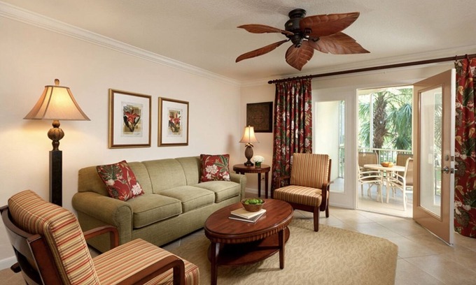 Your stay includes exceptional amenities designed for comfort and leisure. The villa features a full kitchen, allowing you to prepare delicious meals and celebrate together. Enjoy the convenience of a washer/dryer and free Wi-Fi to keep everyone connected. Unwind in the vast living area, or take advantage of resort amenities such as multiple swimming pools, tennis courts, and organized activities perfect for all ages. There are also onsite dining options where you can celebrate post-wedding with your nearest and dearest.