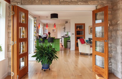 The house is light and airy. It has an open plan kitchen/living room and an orangery which is separated with bi-fold doors. This is used as a dining room.