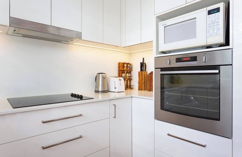 The kitchen includes the appliances such as a microwave, oven, stove, toaster, kettle and fridge. There are cooking staples and basic pantry condiments for use during your stay.