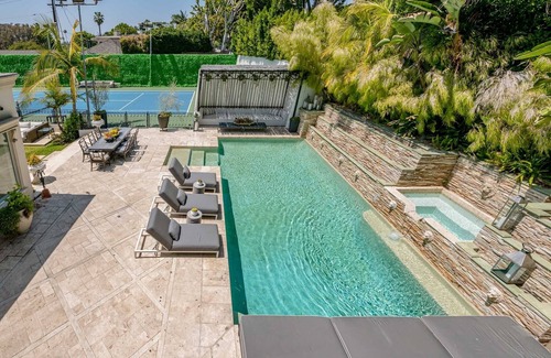 Family Vacation Dream: Privately Gated Mansion Tennis Court and Walk to Rodeo Dr is located in The Flats. Family Vacation Dream: Privately Gated Mansion Tennis Court and Walk to Rodeo Dr provides accommodation, featuring TV, Balcony/Terrace, Sports/Activities, among other amenities. This House features TV, Balcony/Terrace, Sports/Activities, to make your stay a comfortable one.