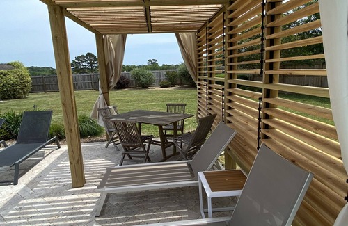 Located for easy access to our private beach, Kiptopeke State Park, Cape Charles, and Virginia Beach. This is the ideal family get-away for 4-5 couples. Completely modern with loads of privacy, it can accommodate up to 12 guests and has two separate living areas. When you're not splashing in the pool, you can take a 1-minute drive to stroll the nicest beach on the Eastern Shore. It is about 6 minutes to Kiptopeke State Park with its great beach, nature trails, fishing pier, and boat ramps, and 12 minutes to the Town of Cape Charles with its restaurants, stores, beaches, parades, marinas, golf courses, and more!