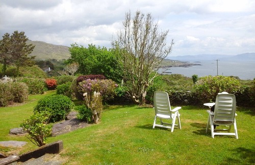 A newly refurbished detached south facing home, 'Ciamaenor' is in an elevated position with an enclosed sheltered large garden, enjoying magnificent sea views over Kenmare Bay. Terrace with garden furniture and portable grill.