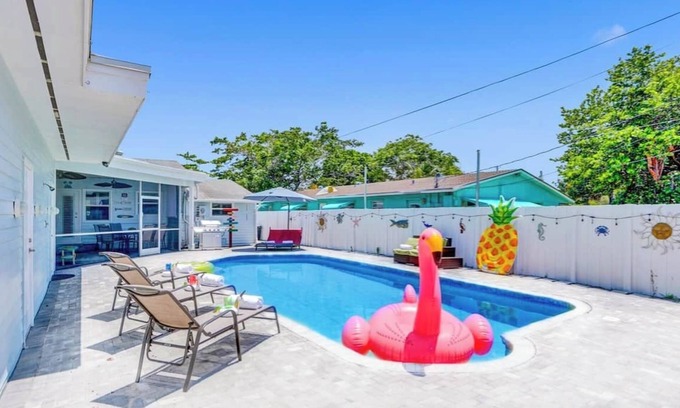 - 4BR House, Heated Pool 5 mins to Beach Game Room