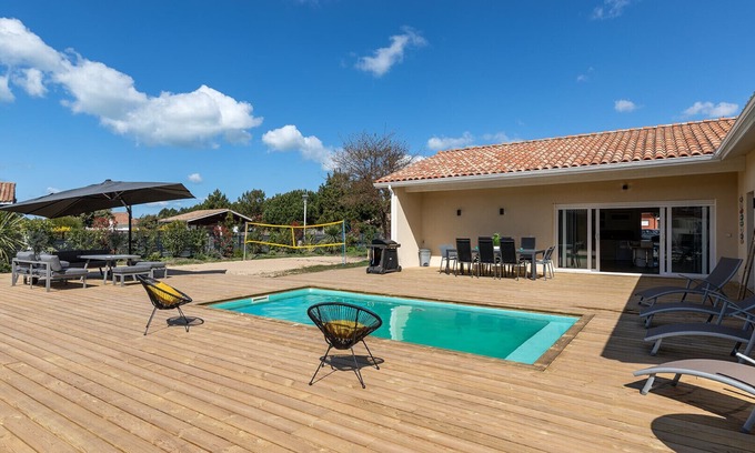 Family villa for 10 people with heated pool close to the ocean. | Villa in Vensac