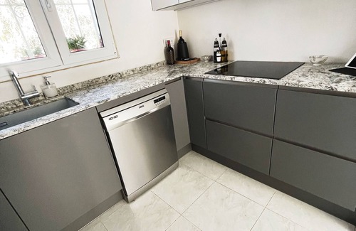 Brand new Fully equipped kitchen with Neff Oven/Grill, Induction Hob, Neff Microwave, Dishwasher, Fridge/Freezer, Washer/Dryer. Dining area for 6 people with access to outside terrace.