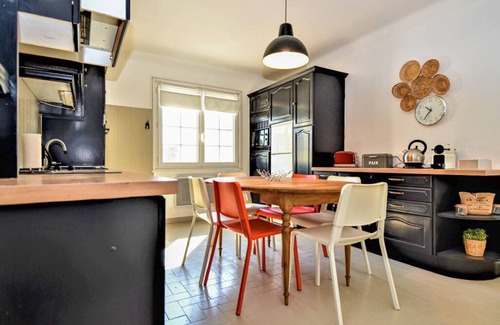 At the gates of the Camargue between Nîmes and Arles, this beautiful renovated villa, fully air-conditioned, is located in a quiet area, on a large enclosed plot of 2,000 m2 in the heart of the village and close to all shops on foot.