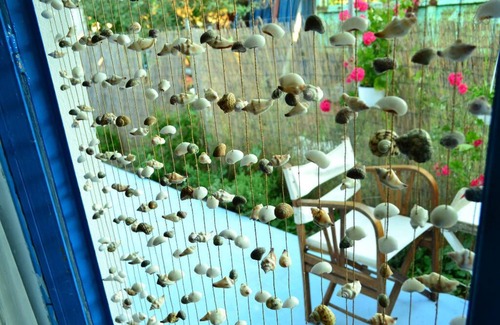 Traditional old stone house modified to one big one room with no walls with only smart wall partitions,one big balcony with relaxing outdoor furniture under a grapevine.