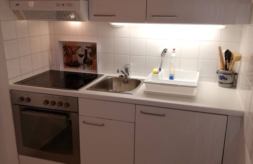 Renovated in 2016 and newly furnished apartment gives you to just 60m² can accommodate up to four adults and two children. The Non smoking property (please note) is divided into a separate bedroom in a double bed (2x 90x200cm fitted sheet) and children's bunk bed (2x 90x200cm fitted sheet) and a further living and sleeping areas. The residential couch with ottoman is quick evening and fold easily into a sleeping area (fitted sheet 160x200) with a gel mattress. For their little ones can be found on the cupboard in the bedroom a cot.
