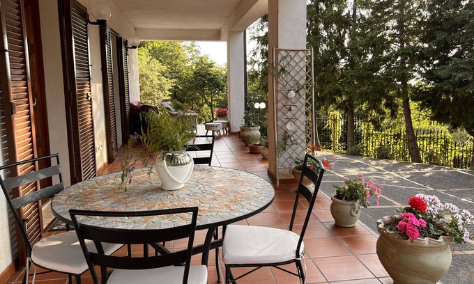 Immersed in nature with an enchanting view of the sea and mountains, Villa Carmelina is a beautiful structure for spending holidays in total relaxation. Completely fenced and under video surveillance, it is accessed from a fantastic garden embellished with a beautiful porch equipped with tables and sofas. The structure extends over two floors and is made up of a large living room, dining room, kitchen and service bathroom in the living area and 4 bedrooms, 3 bathrooms and a panoramic veranda in the sleeping area. Ideal for four-legged friends, you can enjoy a fantastic barbecue and a vegetable garden for guests to grow and harvest spices and vegetables at km 0. A few meters from the structure there is the "San Giovanni Vecchio" farm known for the cultivation of saffron, ginger, aromatic herbs and white olive trees and many other plants where the owner organizes tours among the ancient walls of the ancient monastery, enjoying a good country-style breakfast and lunch and dinner with her garden products by reservation.
