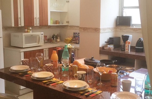 Well decorated and with large flat screen TV and open kitchen its a nice apartment for a long vacation or a quick getaway. Best apartment in the heart of S.P.Manhattan.