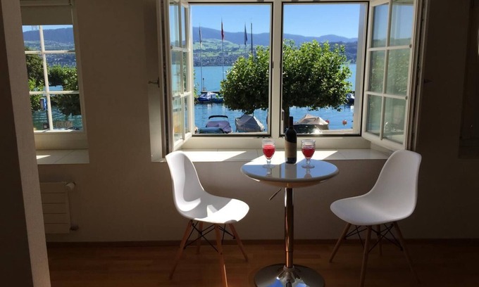 Beautiful bright apartment on Lake Zurich, 2.5 rooms, equipped with a comfortable double bed and separate single bed in the inviting living area with corner couch and a beautiful view of Lake Zurich.