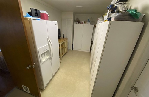 The fully equipped kitchen with dual oven is great for preparing freshly-caught meals for a night in or any other meals you enjoy. House has 2 refrigerators (with one having an ice maker) to hold all your delicacies. If you prefer not to cook, take a leisurely walk to the Six Mile Marina about a 1/4 mile away (summer months only) or drive to the Sportsman Cafe less than a mile away for breakfast, lunch or dinner (open year round).