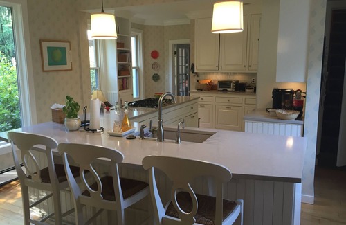 House has 7 bedrooms, 5 baths and a lovely first floor that is perfect for entertaining. Classic 1870 house with all interior updates, 3 bedrooms with en-suite baths plus 4 other bedrooms with hall baths. Large pool and spa and two outdoor eating areas. House is beautifully furnished and fully equipped. Walk to town, train and Cherry Lawn park. Beach sticker included. TWO WEEK MINIMUM STAY