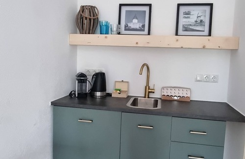 • Open kitchen with dishwasher, oven and Nespresso machine.