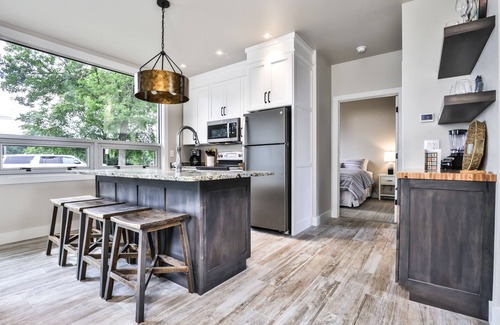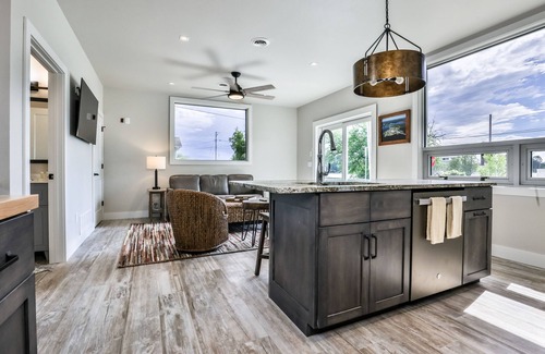 The vibrant exterior and furnished patio will greet you as soon as you arrive providing plenty of seating for everyone to gather after days on the water. When you need a bit of downtime, head inside, and the natural light, modern fixtures, and contemporary furnishings will have you slipping into relaxation mode in no time. Kick back and stream your favorite movies and shows on the mounted TV as the cook of the group fixes tasty meals in the full kitchen equipped with stainless steel appliances and modern cookware. When you need a bit of privacy, two bedrooms await with plush bedding. Extra perks include high-speed WiFi and central air-conditioning.