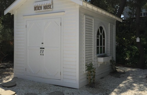 SEA LA VIE: Location! Location! Location! This classic cedar-sided beach house is located five houses (200 feet) from the beach and is just as close to the bay. It sits on a short block with few other houses, giving you a completely private beach experience. The house is within walking distance to wonderful restaurants, cafes, ice cream parlors, markets, plus more and has been recently renovated both inside and out. It features a fully stocked new kitchen with stainless steel appliances and two new full baths. There's a bedroom with a queen bed and an adjoining full bathroom on the main floor; upstairs there are three more bedrooms (two with queen beds, one with two sets of bunk beds). High quality mattresses were recently purchased. The house has a charming front porch and a spacious (and completely private) backyard with a patio, gas grill and new outdoor shower. The yard is beautifully landscaped and features a dining table and patio furniture (with new custom cushions), new shed stocked with beach chairs, boogie boards, beach toys and towels. Owner writes for HGTV magazine and has strived to make this house feel like a home for tenants. If you want a vintage beach rental with modern amenities, this house is for you. To note: we do not rent to persons under 25 or for prom. Important: Please read the renter's agreement before booking. Once you have booked, you will be emailed a lease to sign. Thanks and here's to a fun and memory-filled summer vacation!