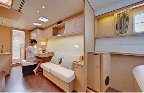 A modern and comfortable catamaran with 4 nice double cabins each with private bathroom, shower, air conditioning and living room with kitchen space, Bose sound system and LCD TV.