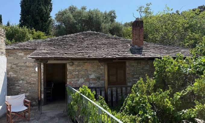 This rustic house has two floors, is beautifully furnished and well equipped. The house is located in one of the old "Kalderimis," the donkey paths that crisscross the peninsula for hundreds of years. The trail leads uphill to the chapel "Agia Triada", where the source is located, from the house draws its drinking water.