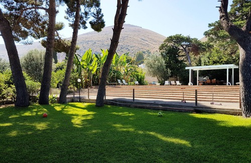 Villa Omero is a beautiful villa sorrounded by a huge and fantastic exclusive garden (10,000 square meters), a corner of paradise with a lovely swimmingpool in its hart. It's perfect for those who are looking for a place where to stay all day without the need of going out. At the same time the villa is 5 minutes from the lovely beach of Mondello, 5 minutes from the village of mondello, 5 minutes from the highway and 20 minutes from the city center and from the airport.