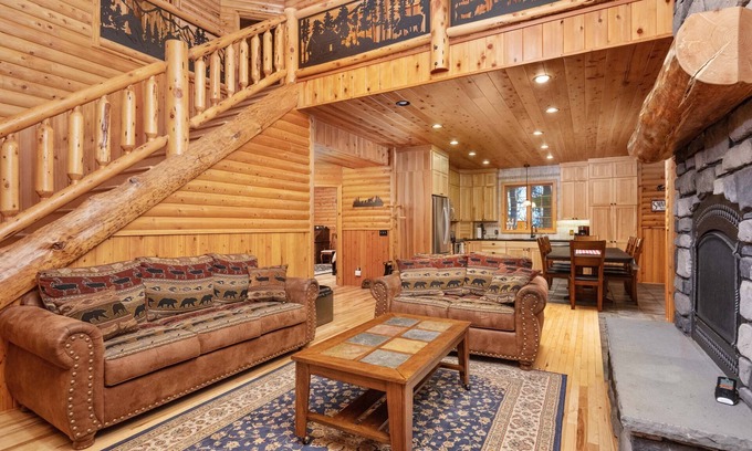 - Rustic Elegance: The lodge boasts a captivating log cabin aesthetic complete with leather accents and a grand rock fireplace, creating a romantic ambiance ideal for pre-wedding gatherings and cozy evenings after festivities.
