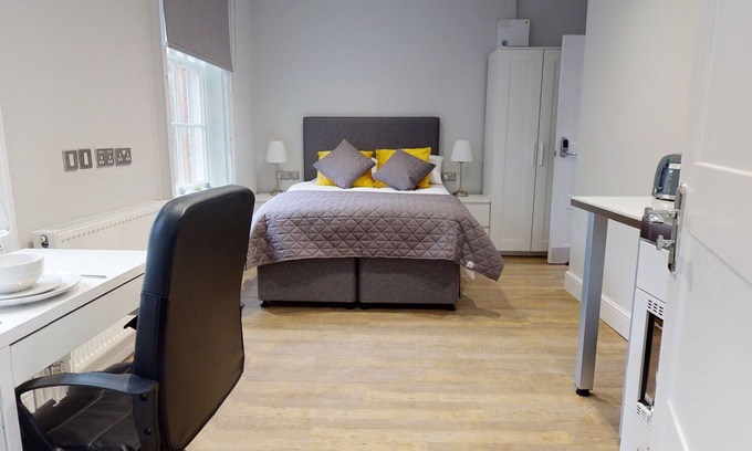 This safe/secure accommodation offers a full smart lock coded entry system & 24hr CCTV, high quality broadband & unlimited data at a speed of 100Mb/s.