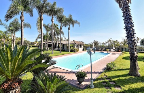 Fantastic vacation home with paradisiacal garden at the foot of the volcano Etna is located in Macchia. Fantastic vacation home with paradisiacal garden at the foot of the volcano Etna provides accommodation, featuring Air Conditioner, Pool, TV, among other amenities. This House features Air Conditioner, Pool, TV, to make your stay a comfortable one.