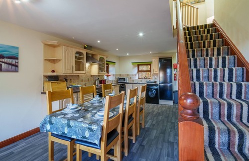 Up the 13 carpeted steps to the first floor, you'll find three beautiful bedrooms, a double and a twin, and the third bedroom consists of bunk beds. The large wet room is also on the first floor with a shower, toilet, basin and a heated towel rail.
