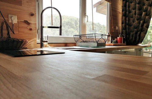 Ferme de Samson offers you stays in the heart of our unspoilt nature, our new 4-person chalet, self-contained, shaded and air-conditioned, with its private terrace on stilts, in a peaceful setting with a magnificent view of the Vercors.