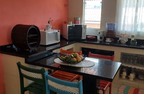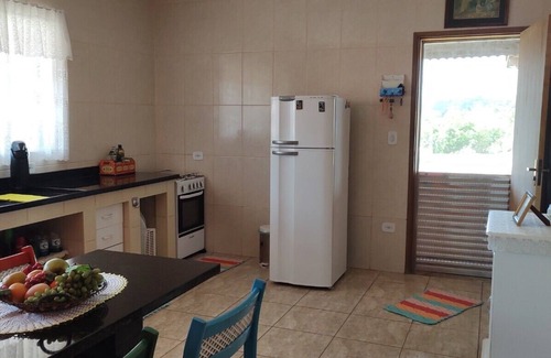 The Bela Vista farmhouse is located in the Rubins neighborhood, a very quiet place for those who want to relax and enjoy nature. It is close to the city of Socorro. The property is all surrounded by lots of green. House with 03 bedrooms and 01 suite, plus 02 bathrooms, large living room, large kitchen with balcony, barbecue area complete, solar heated pool, orchard. Minimum age to rent 21 years. Children are welcome. Ambient sound is allowed without time restriction.