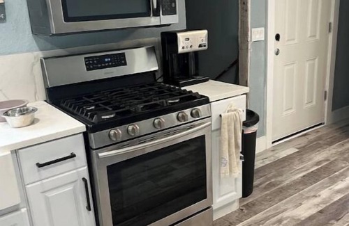 As our guest, you'll enjoy a wealth of amenities that will make your stay truly comfortable and convenient. Indulge in a fully stocked kitchen, complete with a stove, oven, refrigerator, grill, and all the necessary appliances and utensils to whip up delicious meals. Relax in the cozy living room, or step outside and bask in the warmth of the fire pit while taking in the serene outdoor play area.
