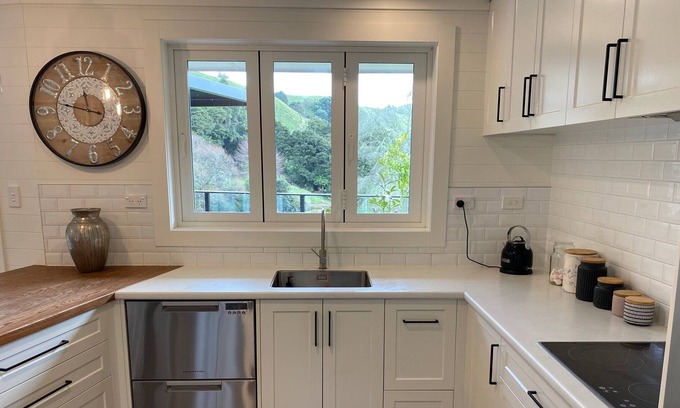 We are located in the beautiful King Country on a loop road off the iconic Forgotten World Highway. The accommodation is on a working farm and is surrounded by a mixture of native bush and farmland.