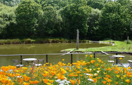 Highlights: independent entrance, soundproofed suite, hydromassage shower and private whirlpool bath, hairdryer, bathrobe, private toilet, private 20 m² wooden terrace overlooking the pond, with private garden furniture.