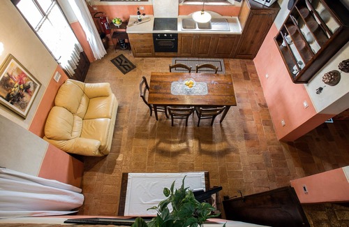 Fascinating lofted apartment of 67 sqm, on the first floor, to which the access is through an ancient and comfortable staircase. It has a pleasant living room with cooking corner, double bedroom, comfortable and elegant bathroom, a pleasant and comfortable loft ,for a relaxing reading