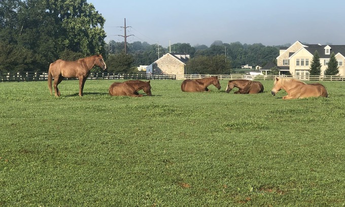 Our Nookside Farmhouse Suite is located in the main house and is gives a farm view on the 2nd floor. PLEASE NOTE THIS ON THE 2ND FLOOR. You will have steps. Located on 47 acres and home to our approx. 30 horses and ponies. We no longer offer trail rides but you can enjoy walking the property and meeting many of horses. We do not encourage large groups but cater to small families and/or extended families. The foyer entrance is semi-private. Check-in is 3-9 pm. Please let us know an ETA prior to arrival. Upon arrival, either my wife or I will be there to greet you and to show you your suite. The upstairs suite has double doors that close and latch on the inside for full privacy. You will have a beautiful and restful view of the horses and farm. The suite includes 2 bedrooms and 1 large bathroom. Bedroom #1 has a king size bed and bedroom #2 has a queen size bed and 2 single child-size beds. The large bathroom has a double sink & closet and separated door into the bathtub and toilet area. A mini-refrigerator, microwave, and coffee bar are in the suite entrance. Note: there is no kitchen but you can heat up small items in the microwave. It is has a microwave, coffee bar and mini-fridge, not a large refrigerator for storing lots of food. Great for ordering in and not so much set-up to make your own meals. There are 10+ restaurants within 5-10 min.