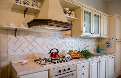 Interiors are spacious, bright and cosy; the classical features of country architecture: brick vaults, in-sight beams, recesses and terracotta floors melt with the pieces of furniture, making every space comfortable and welcoming. Villa Il Giardino di Diana is composed by two twin apartments, each of them with living room, large fully-equipped kitchen, 3 large double bedrooms and 2 full bathrooms.