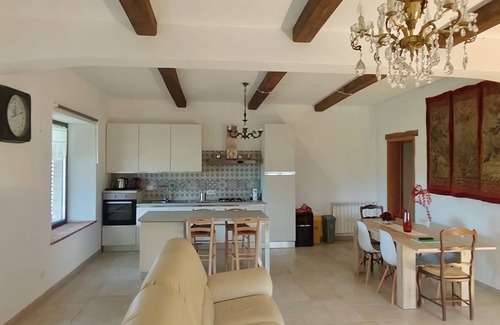 The small apartment next door, with exit to the patio, is composed of a living room with kitchen, double bedroom and possibility of a third bed and bathroom. This apartment is opened only in case of necessity if agreed in advance.