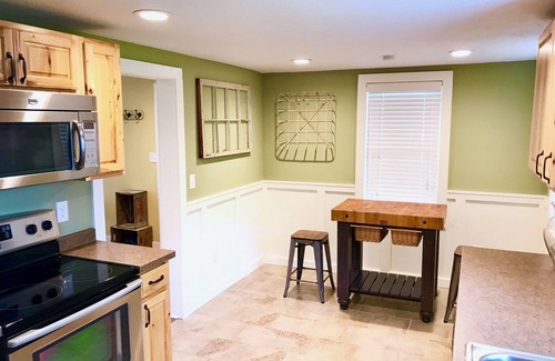 This spacious two bedroom Farmhouse getaway is set on a beautiful 175 acre Ozark farm surrounded by picturesque views. Conveniently located just 5 miles south of Rolla, 7 miles from Missouri S&T campus, 35 minutes to Fort Leonard Wood, and 20 minutes to Saint James wine country. The farmhouse has been completely renovated with all new furnishings, farmhouse decor, bedding, dishes, 3 flat screen TVs, high speed WIFI etc. A peaceful place to relax, unwind and re-charge.