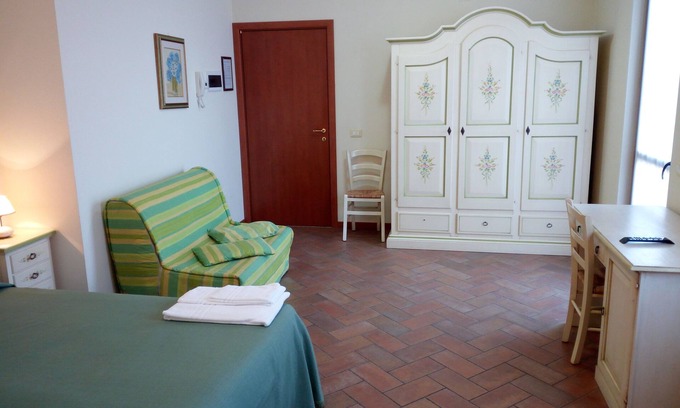 The room of this Agriturismo Verona is equipped with climate, TV and free wifi, as well as a desk with chairs.