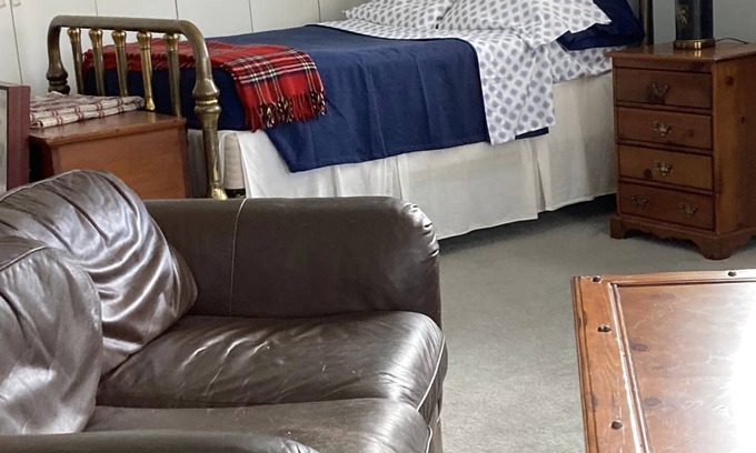 Country living at its best with pastoral views of majestic horses, red barns, and white fences while relaxing under a blanket of stars. Cozy efficient guest quarters with gracious windows allow for maximum sunlight. A beautiful country farmhouse situated on 10 acres of land. For the American History buff, the nautical suite is decorated with vintage ship decor original to the post-World War II era. For guest comfort, a vintage iron, a double bed with premium linens, and 100% cotton towels are provided for the tile bath. In addition, the efficient kitchen includes a full-sized refrigerator for your snacks, a microwave, and a coffeemaker. Guests will love the quiet peacefulness of the country while relaxing on an outdoor deck Explore creeks/woods. For the explorer, some of NC's most favorite small towns are in every direction. Road trips to Lexington, Salisbury, Statesville Yadkinville, Clemmons, and Winston Salem are all within a 20-minute drive. Try the BBQ NC's famous for in Lexington while enjoying a drink of Cheerwine made in Salisbury. Antique shops are plentiful in all towns.