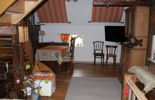 In our eighteenth century farm, spend a pleasant moment in the heart of the Natural Parks of the Northern Vosges and the Pfalz. Classified "biosphere" for its clean air! Enjoy a moment of calm to visit the many castles on marked trails as well on horseback or by mountain bike. Our cottage is equipped with every comfort to receive a family with 2 children or 4 to 5 adults or 4 adults and 2 children.(Possibility of group with an adjacent guest room for 2 to 3 additional persons / with supplement) In summer enjoy our swimming pool, our green spaces and a big terrace - Arrival after 15 hours departure before 11 am