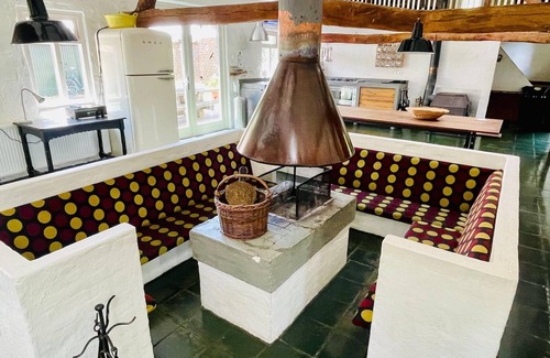 Welcome to your spacious farmhouse escape in the heart of Stramproy, Limburg—perfect for large families or groups of up to 16 guests. This charming 4-bedroom retreat blends rustic character with modern comfort. From crackling fireplaces and cozy wood finishes to an open-plan kitchen and games like table tennis, there's plenty to entertain. Whether you’re gathering around the fire or soaking in the tub after a countryside stroll, this home offers rest and relaxation in style.