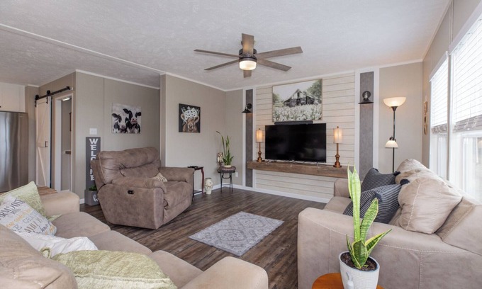 Inside, you'll find a warm, open-concept living space with a fully equipped kitchen—ideal for gathering with family and friends. Rustic touches blend seamlessly with modern comforts, including high-speed WiFi, smart TVs, and plush furnishings that make you feel right at home.
