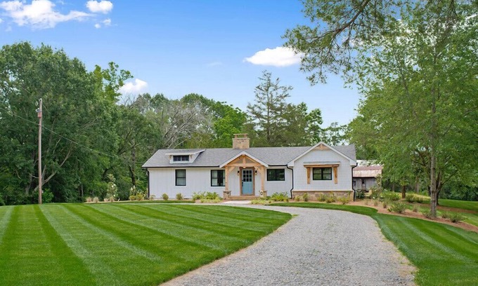 This renovated farmhouse (2020) is nestled back in the foothills of Stokes County with breathtaking views of Cook's wall and all the privacy for a relaxing get-away. The older homestead built in the 1800's still stands on the property. The Lucky House's sister home, Treetop, is next door (yet allowing plenty of privacy between the two homes) and sleeps 8 if you need more room for your guests. Treetop's Property ID# is 3934130 and is also available to rent on it's own.