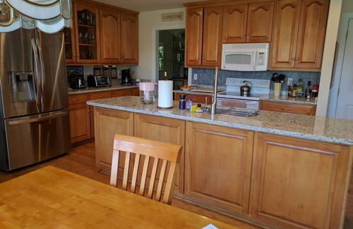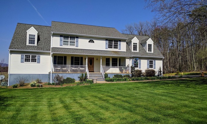 Recently listed w/ VRBO. "Superhost" on AirB&B - 5 Star Rating after 185 Reviews. Beautiful views on 14 acres offer the closest proximity to Monticello (4 minutes away). Jefferson Vineyard (1 min), Ash Lawn (3 min), Carter's Mountain & Michie Tavern (5 min), Downtown Open-Air Mall (14 min). Relax with a cold drink on the front porch or enjoy views of the mountains and pond from the back deck. There is plenty of space to breathe here. Feel free to snack on whatever we have. Great views & country feeling but close to everything. Relax & make yourself at home! Note that the 4th bed (queen) is located in the sitting room off the master bedroom. This home has full kitchen & laundry facilities.