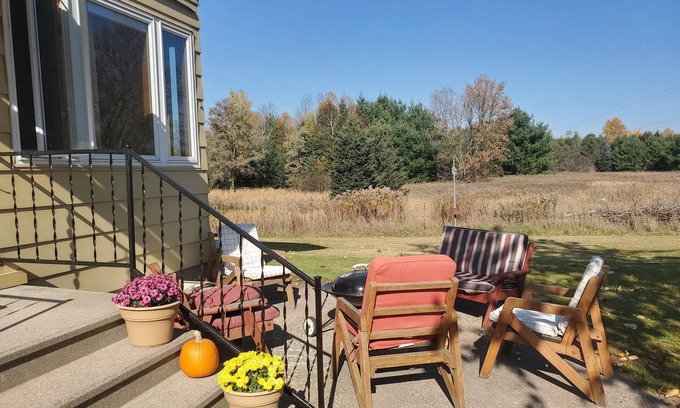 Secluded farmhouse on 21 acres with nearby dining, shopping, and entertainment. Four season views and access to trails, bike routes, county park, and performing arts center. Shawano Lake and public boat launch nearby. Hike or snowshoe the property's partially wooded fields, with a night sky perfect for stargazing. Take in a game or movie on the big screen. Outdoor patio with charcoal grill and fire pit - charcoal and firewood provided. No additional cleaning fees.