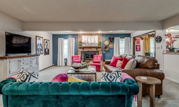 Get ready for a a vibrant country retreat! Set on 7 acres, it offers a colorful oasis with plenty of space to roam and relax. Imagine stepping into a cozy living area adorned with vibrant decor. The spacious layout ensures there's room for everyone to unwind comfortably. With the expansive outdoor area with grill, guests can soak in the natural beauty of the surrounding landscape, or enjoy outdoor cooking. It's the perfect blend of charm and tranquility for a memorable getaway. WiFi & smartvs
